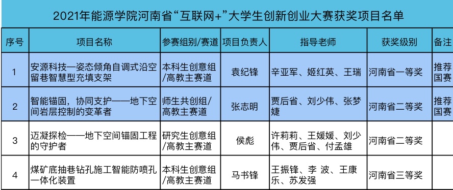 在该项赛事中取得突破, 4个项目获得省奖,其中2个项目被河南省推荐参加国赛。辛亚军老师被评为优秀创新创业指导老师。