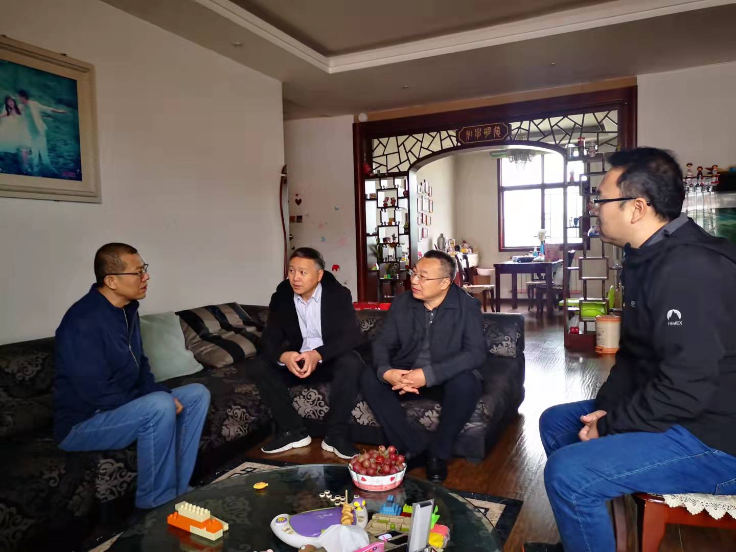 10月11日上午,能源麻豆传媒映画 党委书记康全玉、院长郭文兵、党委副书记阎俊豪、新能源科学与工程系主任刘晓代表麻豆传媒映画 去看望了刚刚完成手术康复出院的倪小明教授。