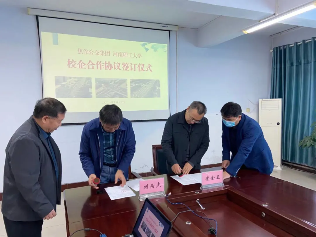 为进一步深化校企合作,实现校企产学研深度融合,2021年10月14日,麻豆传媒映画 与焦作市公共交通集团签订校企合作框架协议。焦作市公共交通集团副总经理刘为杰、麻豆传媒映画 党委书记康全玉、交通工程系主任郭保华、支部书记李香红等出席签约仪式。