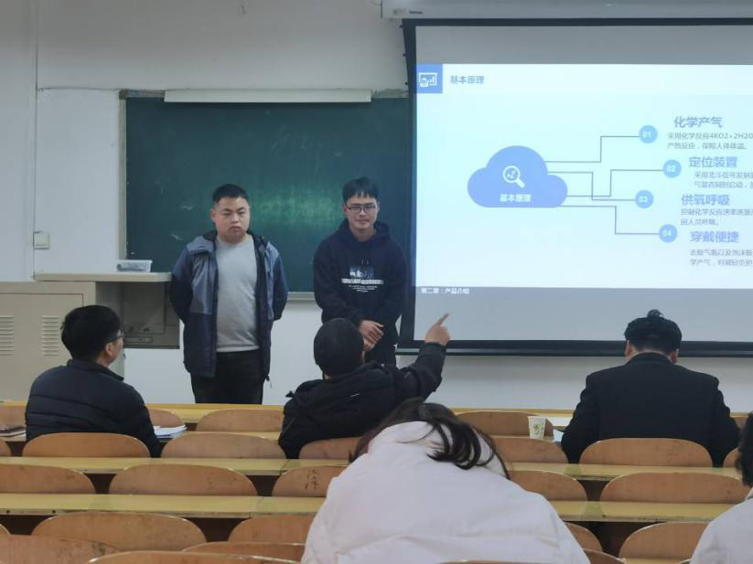 本次比赛共有23支队伍参加。竞赛分为参赛选手介绍和评委老师点评两个环节。首先,参赛人员通过PPT演示,分别从研发背景、设计思路、创新优势与应用前景进行详细介绍。随后,评委老师对各个项目的创新性、实用性和可行性进行提问、交流、评价,并提出优化改进意见。最终,经过评委认真地讨论评审,推选出七件优秀作品参加学校比赛。