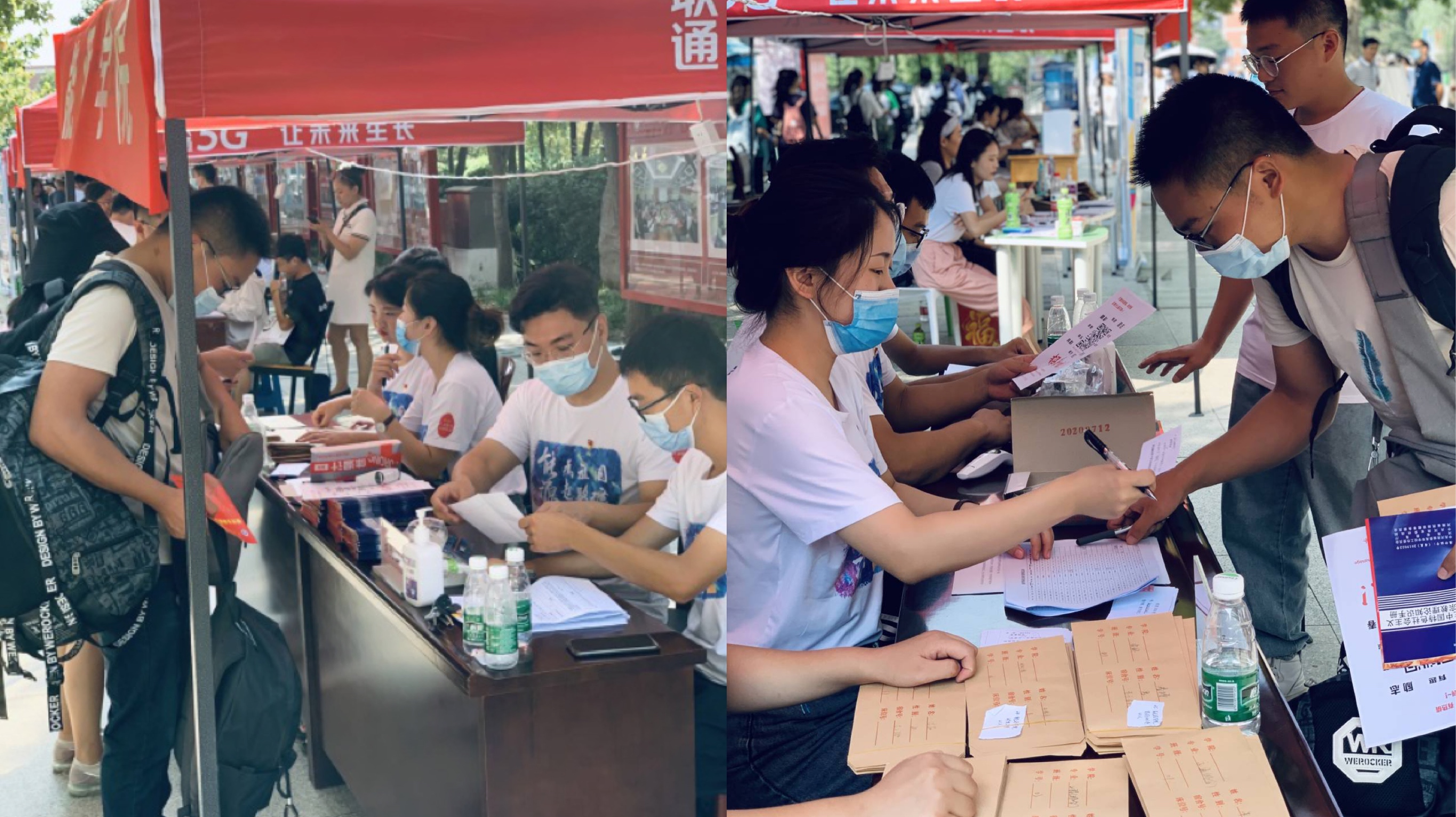 9月9日,高年级研究学生党员志愿者统一穿着“能为祖国,源起路矿”的文化衫,在春秋大道报到处迎接新生,开展新生报到工作。新生严格按照流程安排,自觉排队,保持间距,戴口罩,量体温。按照学校疫情防控常态化工作要求和新生报到要求,志愿者们按照测温查码,检查收取健康登记卡、发放温度计和入宿证明等步骤,有条不紊完成了新生报到工作。特殊情况除外,其余新生均于当天准时报到。