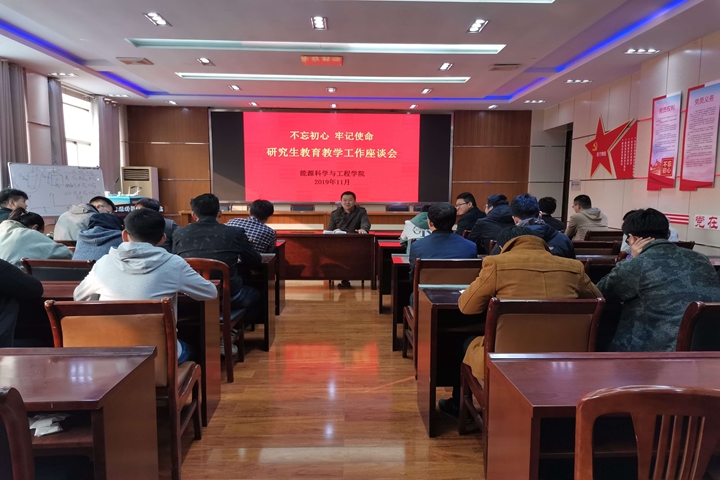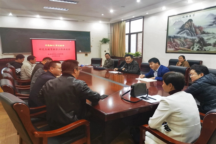 213会议室与研究生导师代表进行座谈。会上,杨玉中首先向导师代表汇报了2020年硕士研究生报名情况,并请各位导师针对研究生教育教学工作提出宝贵意见。之后,导师代表就招生宣传、培养方案制定、研究生导师双选、专业方向设置等问题交流了看法、提出了建议。最后,杨玉中感谢各位导师对研究生工作的支持与配合,号召广大研究生导师向全国优秀教师于瑾同志学习,不忘初心、牢记使命,努力做当党和人民满意的“四有”好老师。
