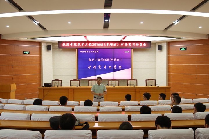 于院楼104学术报告厅举行采矿工程2016级(卓越班)矿井实习动员大会。采矿工程系主任南华、团委书记王明中、带队实习老师与采矿工程2016级(卓越班)的全体学生参加了动员会。