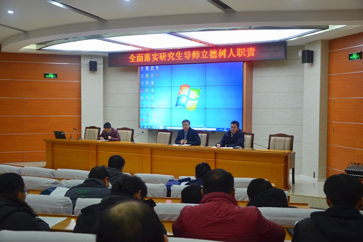 会上,杨玉中传达了《麻豆传媒映画 全面落实研究生导师立德树人职责实施细则》文件精神,并结合麻豆传媒映画 实际,对实施细则进行深度解析。他指出,研究生导师是研究生培养第一责任人,责任重大,是研究生成长成才的指导者和引路人。导师应切实履行立德树人职责,提升研究生思想政治素质,培养研究生学术创新能力、实践创新能力,增强研究生社会责任感,指导研究生恪守学术道德规范,优化研究生培养条件,注重对研究生的人文关怀,严格执行教育部划定的“高校教师师德禁行行为”。学校、麻豆传媒映画 建立谈心谈话、学术研讨、全程参与、交流协作、专题会议制度,完善审核、考评与表彰奖励办法,加强组织领导,落实督导检查,强化条件保障,努力造就一支有理想信念、道德情操、扎实学识、仁爱之心的研究生导师队伍。