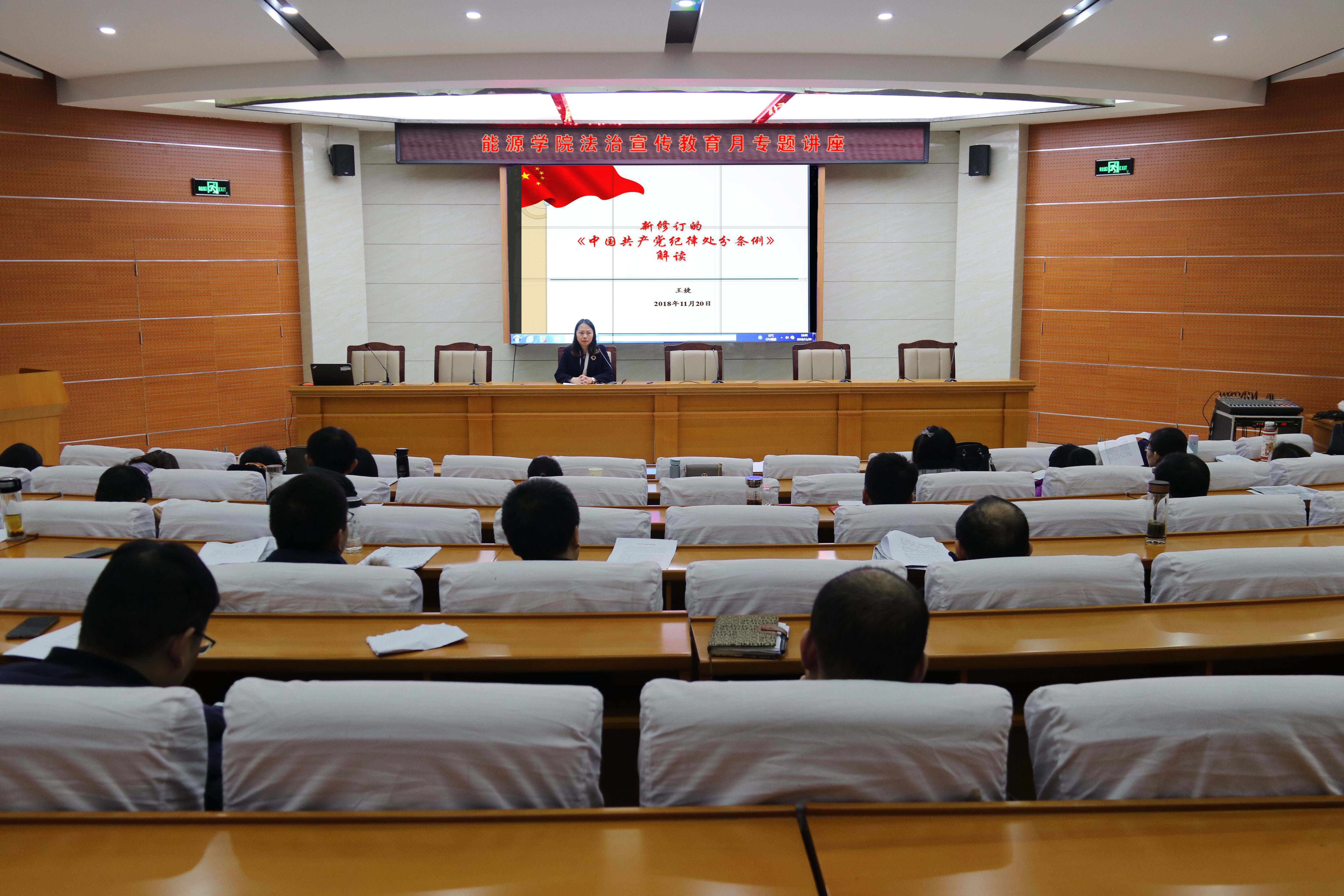 11月20日下午,麻豆传媒映画 在104学术报告厅开展法治宣传教育专题讲座,麻豆传媒映画 党委书记王婕带领全体教工党员集中学习新修订的《中国共产党纪律处分条例》。