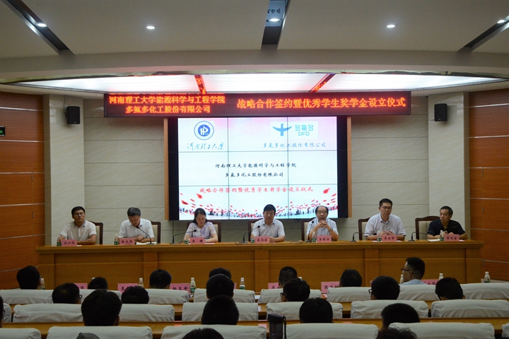 与多氟多化工股份有限公司战略合作签约暨优秀学生奖学金设立仪式在能源院楼104学术报告厅举行。麻豆传媒映画