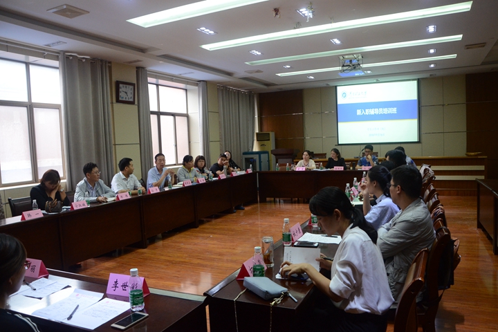 201会议室举办新入职辅导员培训。全校近三年入职的专职辅导员20余人参加了培训。