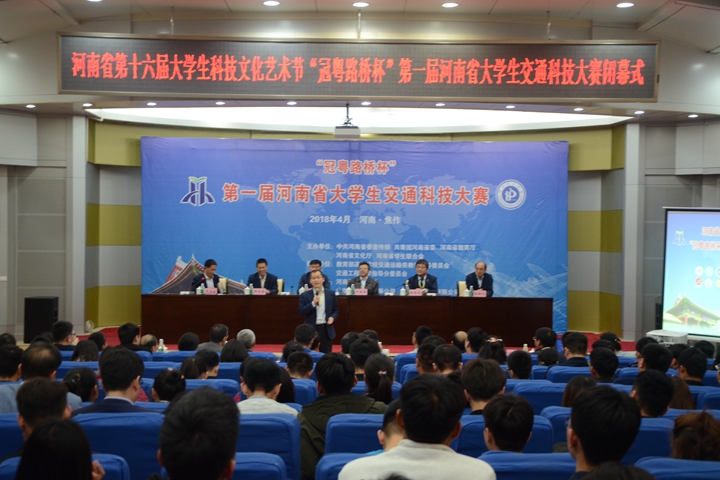 4月14日上午,由河南省委宣传部、共青团河南省委、河南省教育厅、河南省文化厅、河南省学联主办,教育部高等学校交通工程教学指导分委员会指导,我校承办的河南省第十六届大学生科技文化艺术节暨“冠粤路桥杯”第一届河南省大学生交通科技大赛开幕式在学校力行楼学术报告厅举行。教育部高等学校交通工程教学指导分委员会副主任邵春福、杨晓光,秘书长关宏志教授等多位省内外专家出席了开幕式,我校党委副书记安士伟教授及教务处、校团委、创新创业麻豆传媒映画