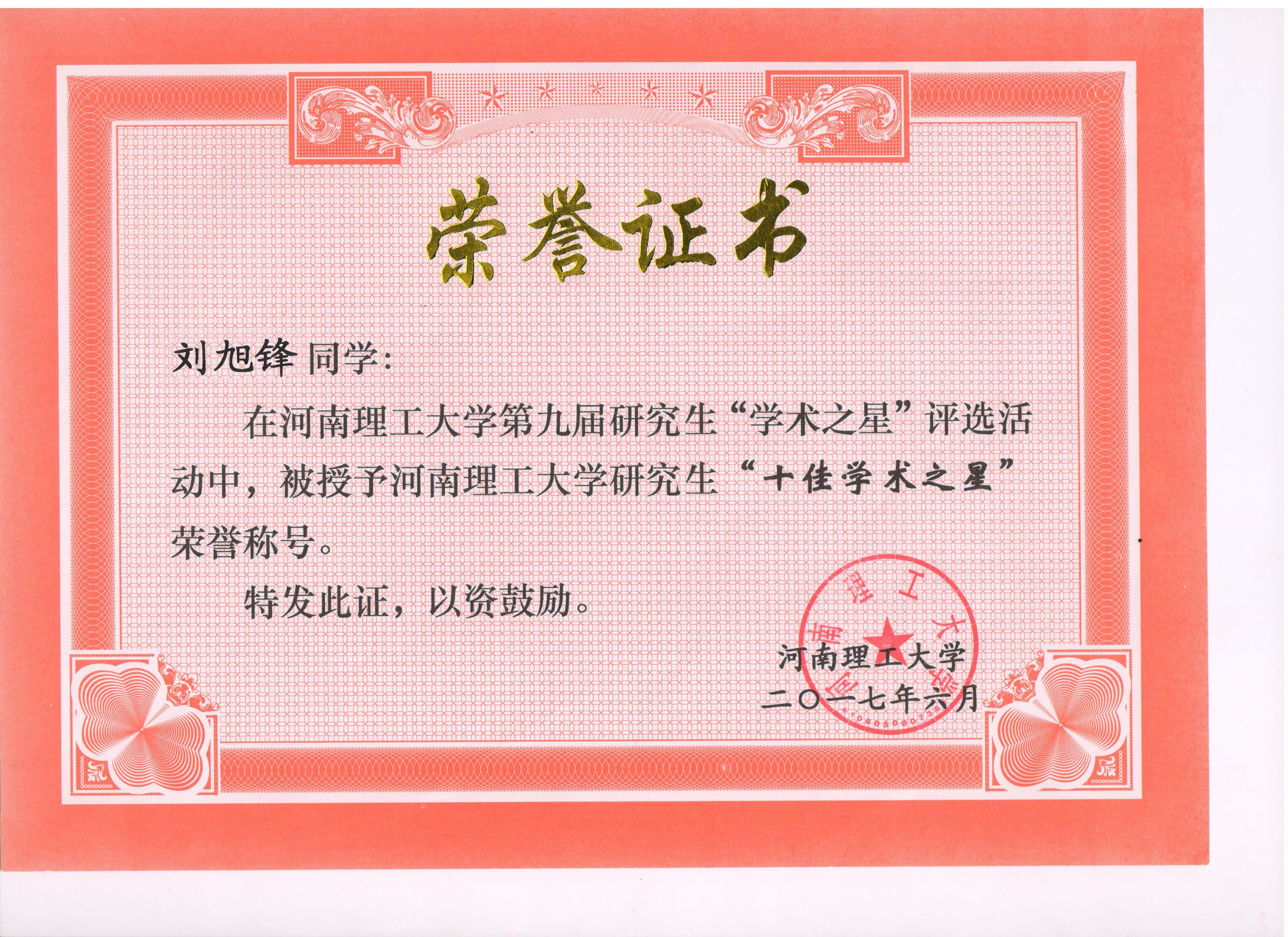14级硕士研究生刘旭锋获得麻豆传媒映画 十佳“学术之星”荣誉称号,张帅龙、申路路、王龙飞和赵永超4名同学获得学术论坛优秀论文奖。表彰大会上,张帅龙作为优秀论文作者代表进行了讨论交流。
