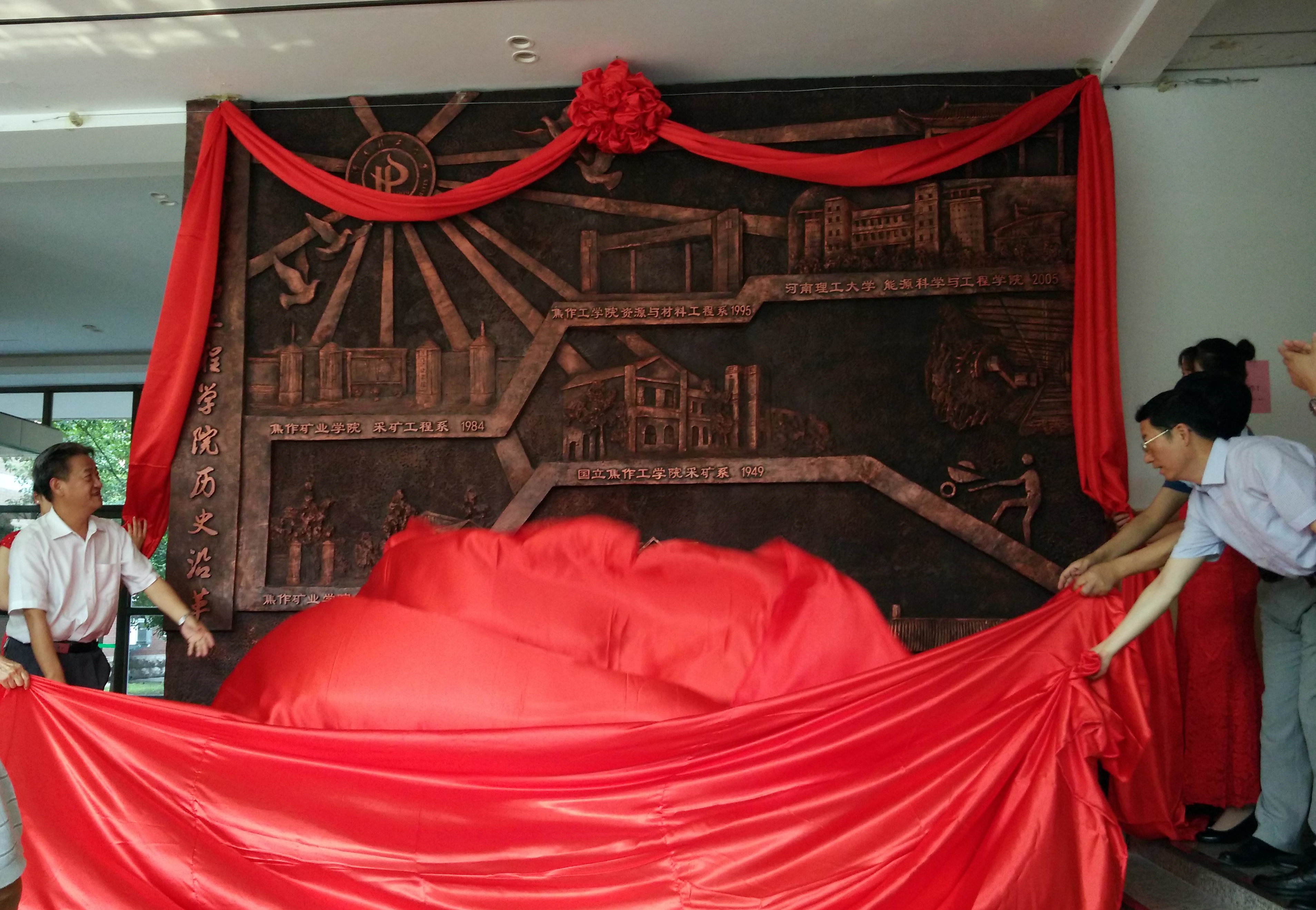 校长景国勋、原采矿系党总支书记张明共同为浮雕墙揭幕。