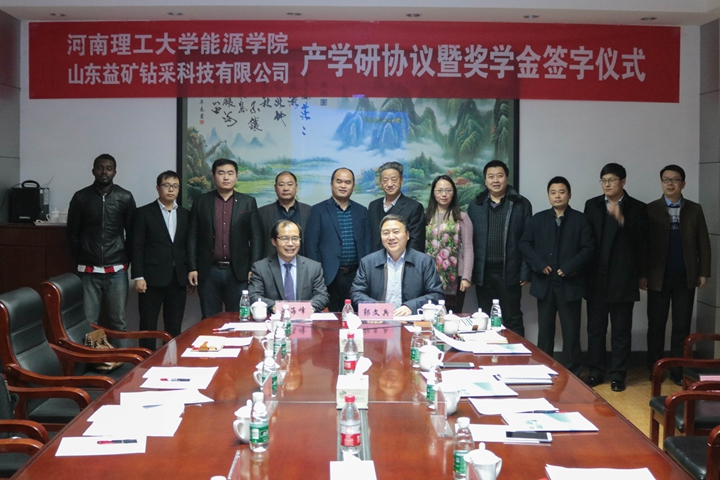 与山东益矿钻采科技有限公司产学研合作暨奖学金签字仪式在我院213会议室举行。我校副校长周英、山东益矿钻采科技有限公司董事长王海峰出席仪式,我院领导及采矿学科专业教师参加了此次仪式。仪式由我院副院长刘少伟主持。