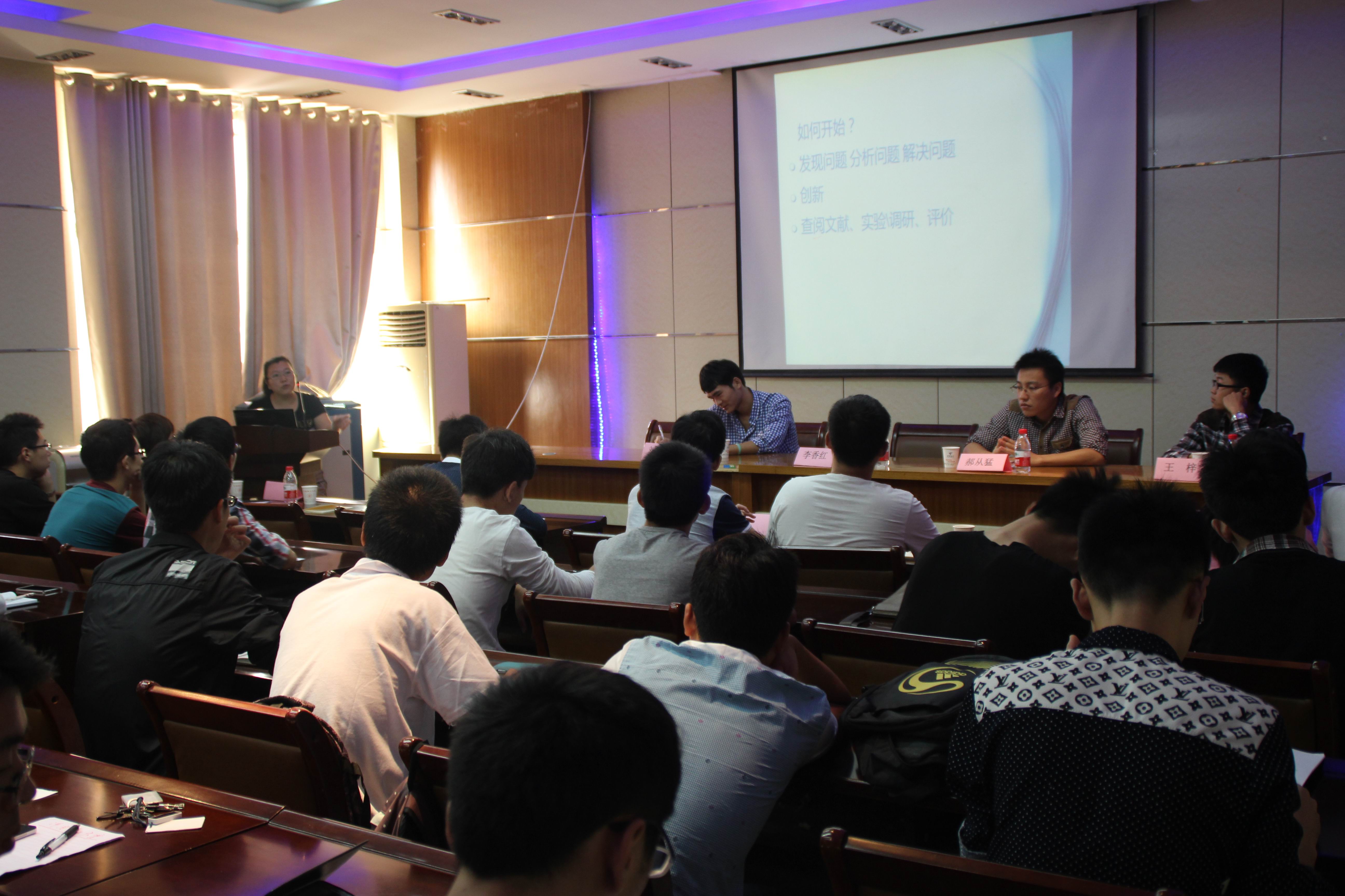 宣介会上,主持人首先介绍了大学生“挑战杯”比赛的基本内容。随后,李香红老师分别就自然科学类学术论文、社会科学类社会调查报告和学术论文、科技发明制作三类具体作品带领大家深入了解了“挑战杯”比赛的要求及作品创新的重要性。她鼓励大家积极参加,并结合自己指导“挑战杯”作品的经历,对同学们提出了以下建议:一、敢于尝试,细心观察,在发现问题之后认真思考解决问题的方法;二、拓宽思维,依据专业知识和前沿科技,牢牢把握创新的宗旨;三、敢于坚持,刻苦钻研。