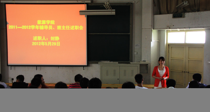 办公楼102、103、104教室分别召开该院2011-2012学年辅导员、班主任工作述职会,各年级辅导员、各班班主任及学生出席本次述职会。首先,各年级辅导员分别从思想政治教育、班级文化建设、班级干部培训、学生日常工作、心理健康教育、工作中存在的问题等方面总结了一学年来的工作情况,并结合下一学年的工作计划和同学们进行了沟通和交流。随后各班班主任老师结合该学年的班级工作情况向自己的学生进行了汇报和总结。本次述职会搭建了一个辅导员、班主任展示自我工作的平台,为老师与同学的沟通提供了更好的渠道,为下一步学生对辅导员、班主任工作评价提供了更好的参考依据。