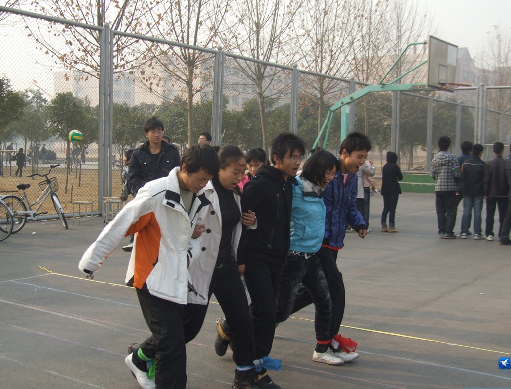 学生会的同学开始了紧张的赛场布置。各比赛项目同时进行,体育场上处处闪耀着精彩。慢速骑车,只见一个个选手气定神闲,稳扎稳打,步步为营,努力将保持平衡,趣味无穷。双人顶排球、双人跳绳,男女搭配,齐心协力,精彩无限。篮球接力、五人六足,大家配合默契,发挥团体协作能力,勇夺第一。一分钟投篮,大家热情高涨,瞄准、投篮、篮球在空中划出一道弧线,每进一个球,鼓掌声、叫好声响彻整个操场。单人跳绳,手起、绳落,追求速度,最为激烈,精彩纷呈。11点左右,所有的项目便进行完毕,“精彩男女生”趣味体育比赛圆满落幕。