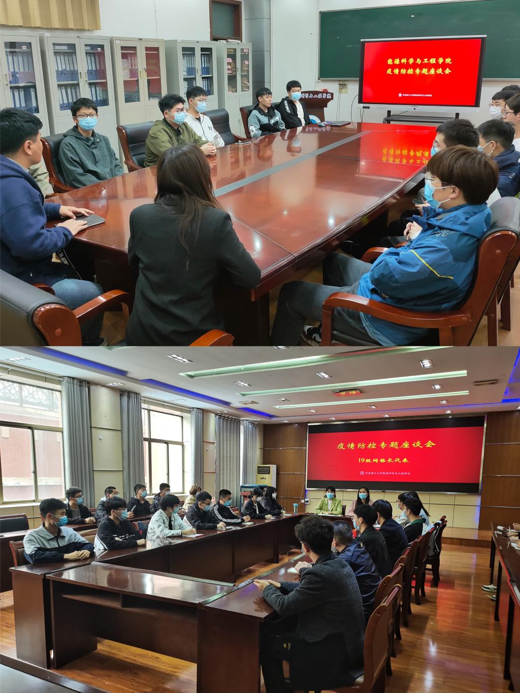 为认真落实学校各项疫情防控工作要求,了解同学们近期的学习、生活情况,帮助学生做好心理调适,引导学生自觉遵守防控要求,4月11至15日,我院6位领导分别与各年级班长代表及部分班级开展座谈,各年级辅导员、班主任和学业导师分别与各年级网格长代表及部分班级开展座谈。