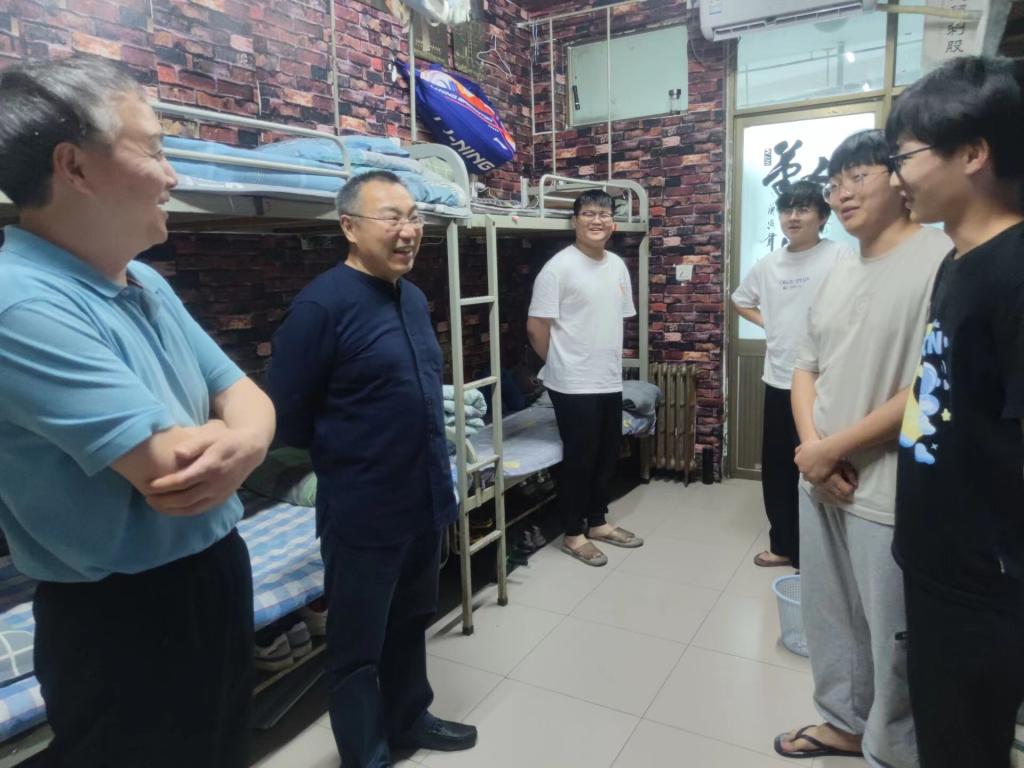 为深入了解学生学习生活和思想动态,加强宿舍安全教育和管理,缓解同学们的考试压力,5月23日下午,麻豆传媒映画 党委书记康全玉、院长郭文兵、院党委副书记阎俊豪及21级辅导员岳帅帅一同深入学生宿舍,走访看望学生,为同学们送去关怀和温暖。
