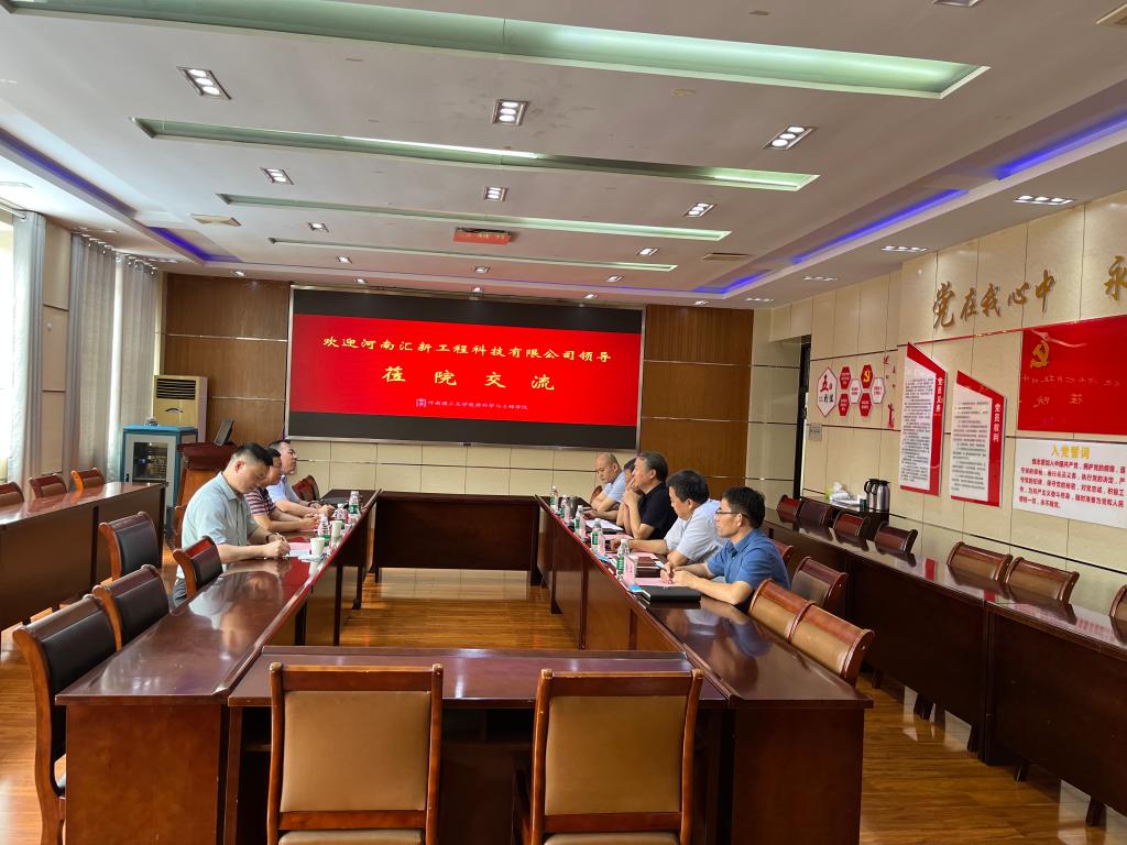 7月20日上午,河南汇新工程科技有限公司总经理王学勤、副总经理张卫东一行莅院考察交流,双方围绕企业绿色能源发展规划与实施路径进行深入广泛地座谈研讨,院长郭文兵、副院长杨玉中、平台主任张小东、采矿工程系主任南华、新能源系支部书记韩颖参加座谈,研讨会在麻豆传媒映画 201会议室举行,副院长杨玉中主持会议。