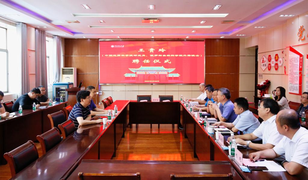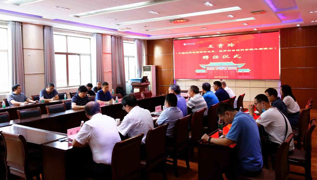 在与会人员的共同见证下,郭文兵院长与王贵玲院士在聘任协议书上签字。