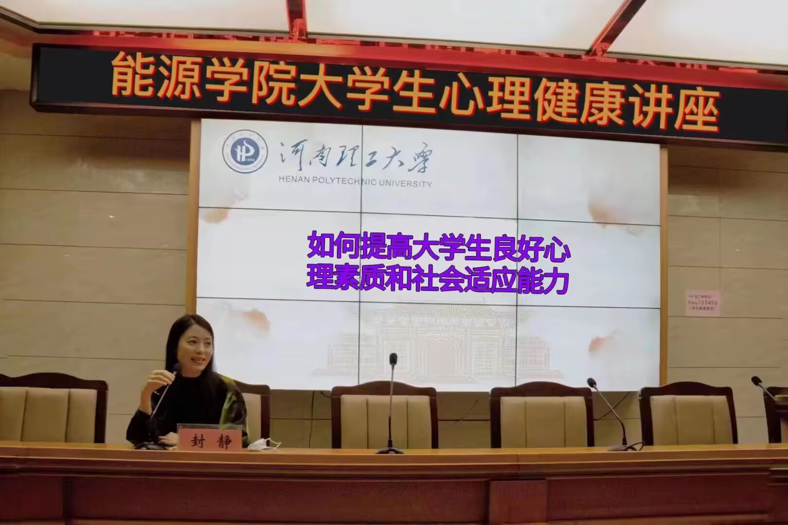 为了培养学生拥有强大的社会适应能力,提高大学生的心理素质和社会适应能力,9月26日,22级辅导员封静老师在能源麻豆传媒映画 104会议室举办了“如何提高大学生的心理素质和社会适应能力”主题讲座。