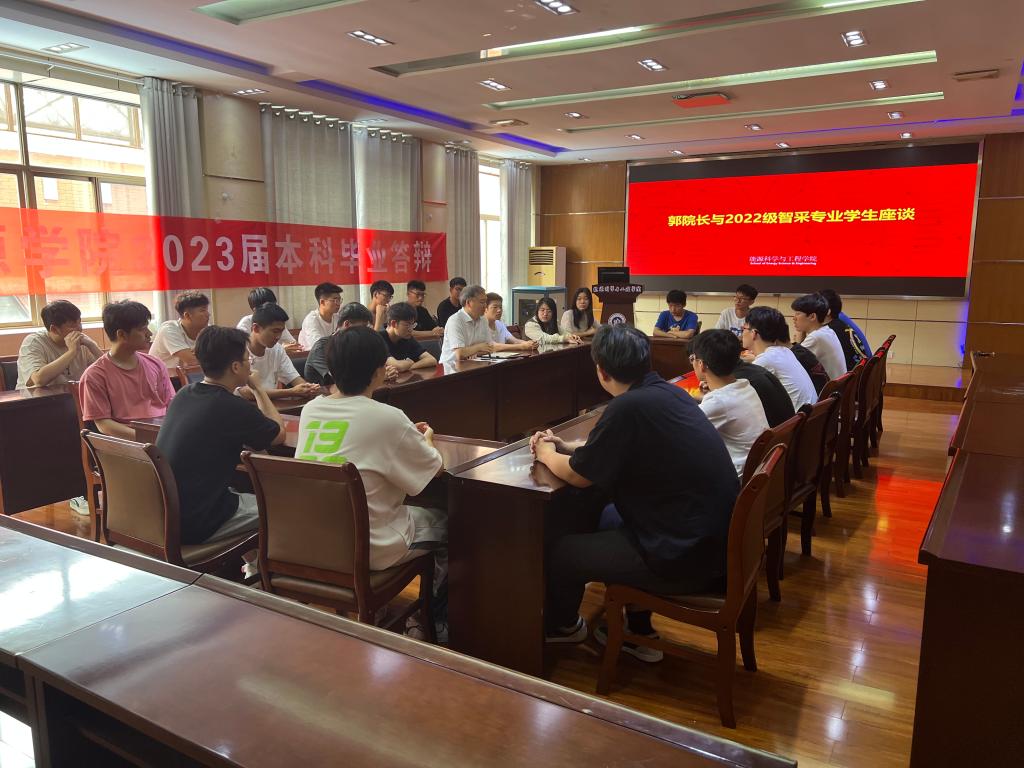 201会议室与2022级智能采矿专业26位学生就生活、学风、班风、活动等问题亲切座谈。
