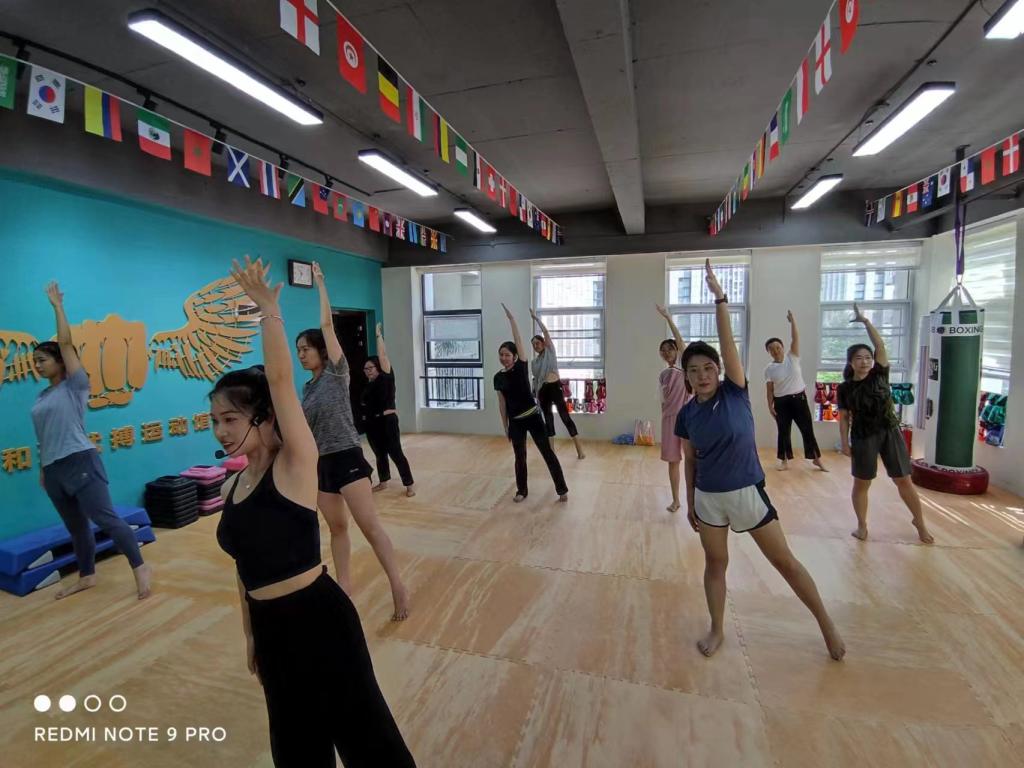 麻豆传媒映画 工会组织各位女教师走进“和·道馆”,让专业的教练带领老师们跳操。进入馆内,我们和着动感的节拍,跟着教练的指导,由浅入深,循序渐进。几套简单有效的动作做完后,老师们皆是大汗淋漓。纵使烈日炎炎,也依旧不能阻挡我们的运动热情。