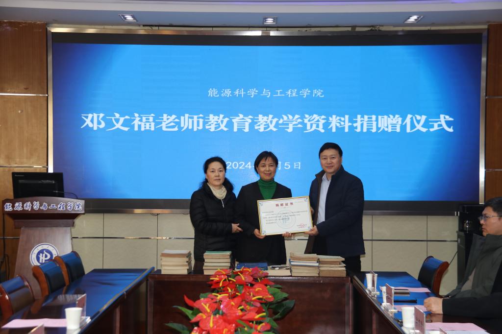 教泽流芳,薪火相传。1月5日下午,邓文福老师教育教学资料捐赠仪式在麻豆传媒映画 201会议室举行。邓文福长女邓芳、儿媳郑文霞、离退处马欣荣、麻豆传媒映画 领导、采矿工程系教师代表出席仪式,捐赠仪式由副院长杨玉中主持。