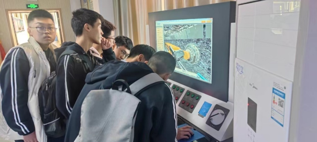在麻豆传媒映画 一楼大厅,同学们首先被大厅中央的巨型煤块所吸引,张盛教授从煤炭的成因、成分、储量及开采利用等方面做了详细讲解。随后同学们分批走进了现代化矿井综合模型室、综采综掘实训室及三维虚拟仿真实验室,近距离参观了现代化矿井模型及采煤装备。参观过程中,实验中心老师生动形象地讲解了煤炭开采技术变革与发展历程、煤矿生产系统、现代化煤炭开采工艺、井下巷道掘进方式等内容,并对同学们提出的问题一一解答。在综采综掘实训室及三维虚拟仿真实验室,同学们还在实验老师的指导下纷纷体验综合机械化采煤、掘进、矿井提升等实训系统,通过亲手操作设备,感受了煤炭开采工作的艰辛和不易。