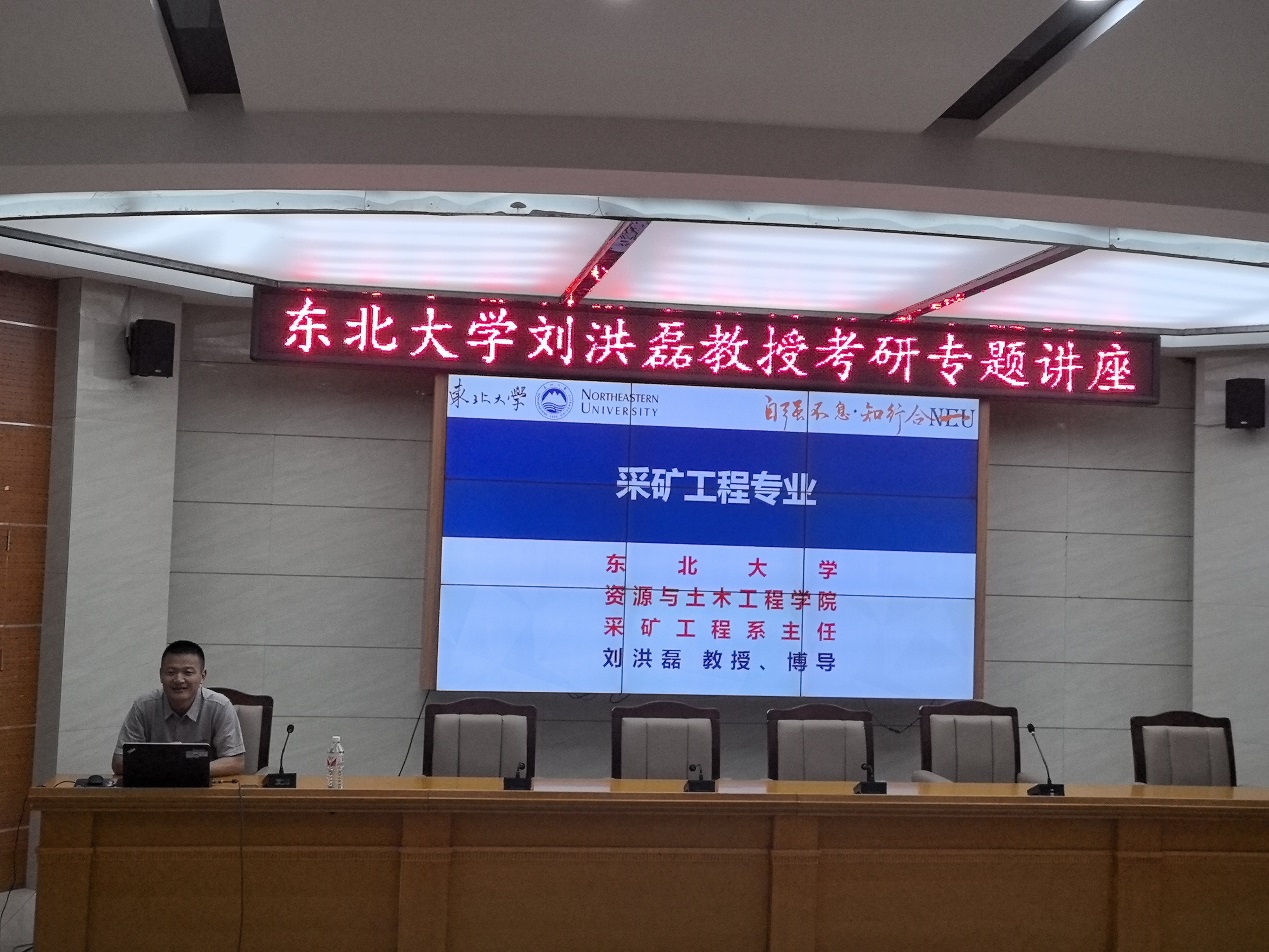 6月20日,刘洪磊教授针对采矿工程21级本科生考研开展了专题辅导讲座。刘教授在讲座中详细介绍了东北大学采矿工程学科的优势、科研环境以及未来的发展前景,吸引了众多学生的关注和参与。刘教授通过分享个人学术经历和科研成果,激励学生们努力追求自己的学术梦想。