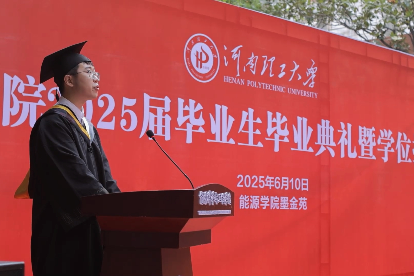 充满青春活力的舞蹈《我们都是追梦人》率先登场,能源学子用灵动的舞步诠释青春逐梦的热望。毕业典礼在庄严的国歌声中拉开帷幕。毕业生代表分享成长感悟。矿业工程博士王文强以科研经历讲述能源麻豆传媒映画 求学历程,新能源本科生程志昂从校园生活追忆同窗情谊与师恩。他们感谢母校培养,承诺践行“好学力行、明德任责”校训,在各自岗位为国家能源事业贡献力量。