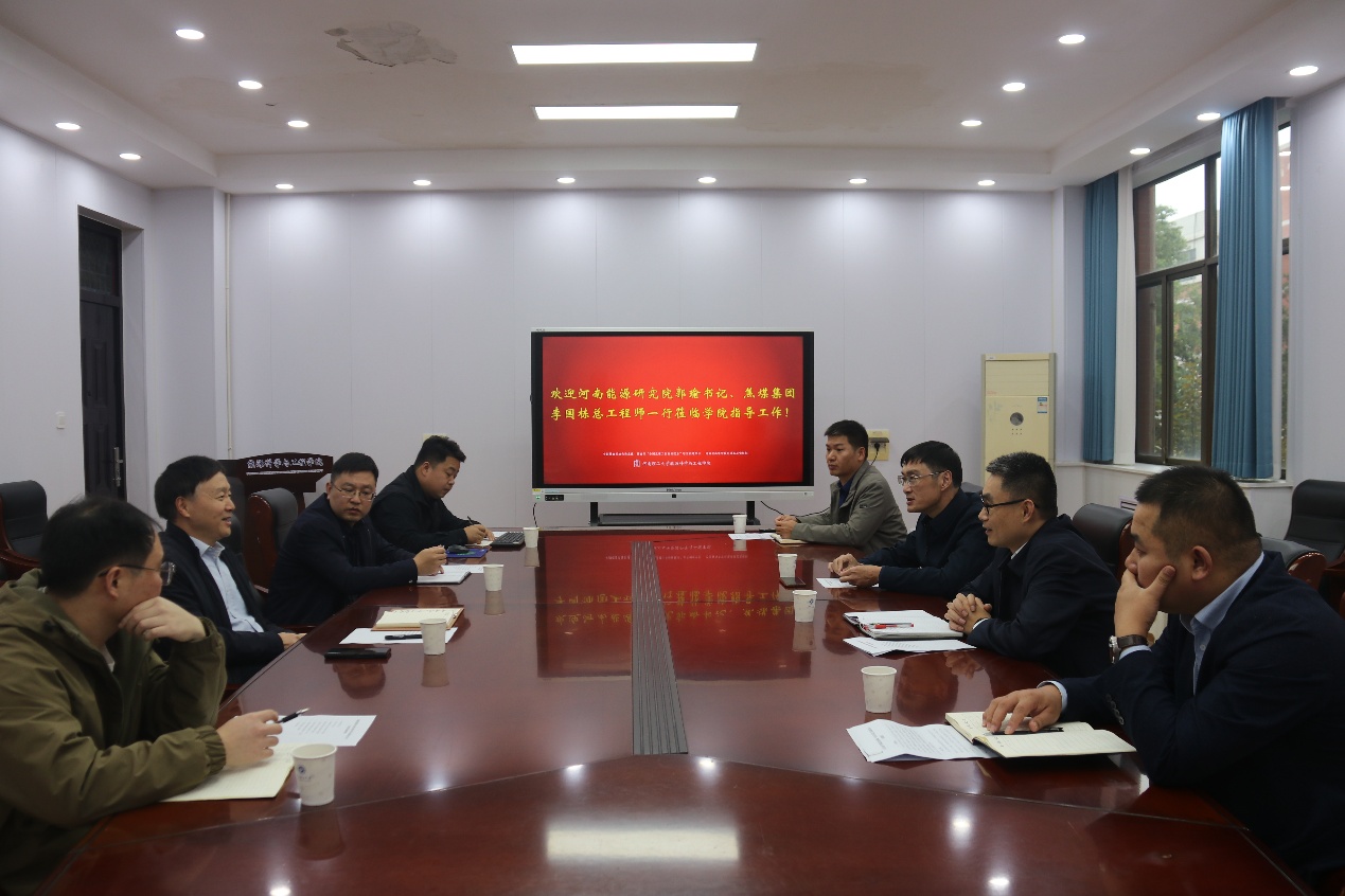 10月17日,河南能源研究院郭瑜书记、焦煤集团李国栋总工程师等一行四人到能源麻豆传媒映画 交流访问。能源麻豆传媒映画 院长郭文兵等师生参加交流研讨会。