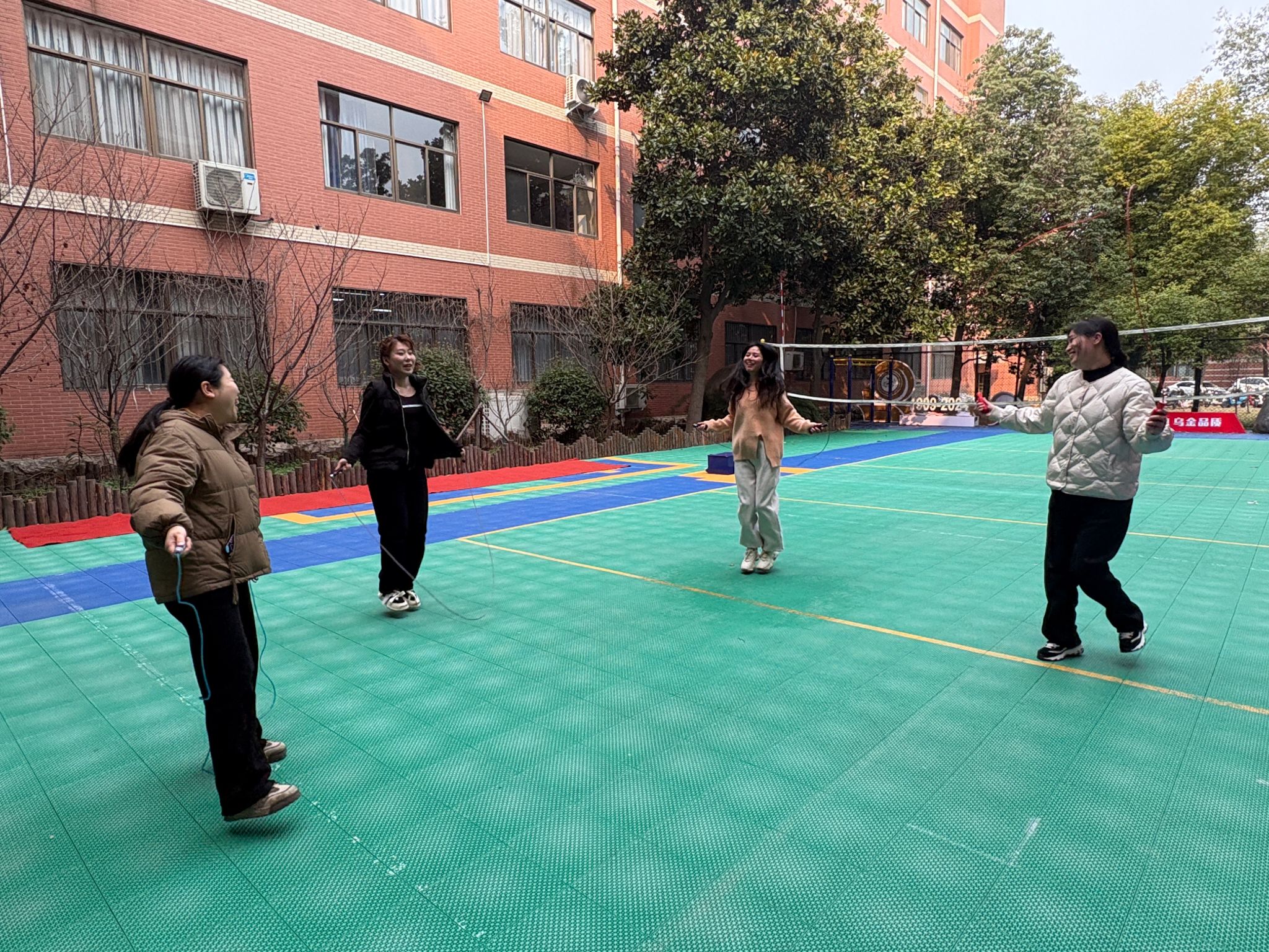 此次趣味运动会设置了踢毽子、跳绳、排球等多个项目。在踢毽子比赛中,五彩的毽子在女教师们的脚尖上下翻飞,仿佛灵动的精灵。有的老师技艺娴熟,连续踢上几十下都不在话下,动作轻盈流畅,赢得了阵阵喝彩;有的老师虽稍显生疏,但也全力以赴,脸上洋溢着专注与认真,每一次成功地踢起都能引发大家的欢呼。跳绳项目同样精彩,单人跳绳的老师身轻如燕,绳子在她们手中快速旋转,只留下一道道残影;集体跳绳时,老师们配合默契,随着绳子的节奏有序跳跃,展现出强大的团队协作能力。排球比赛则将现场气氛推向了高潮,发球、接球、传球、扣球,每一个动作都充满力量与技巧。