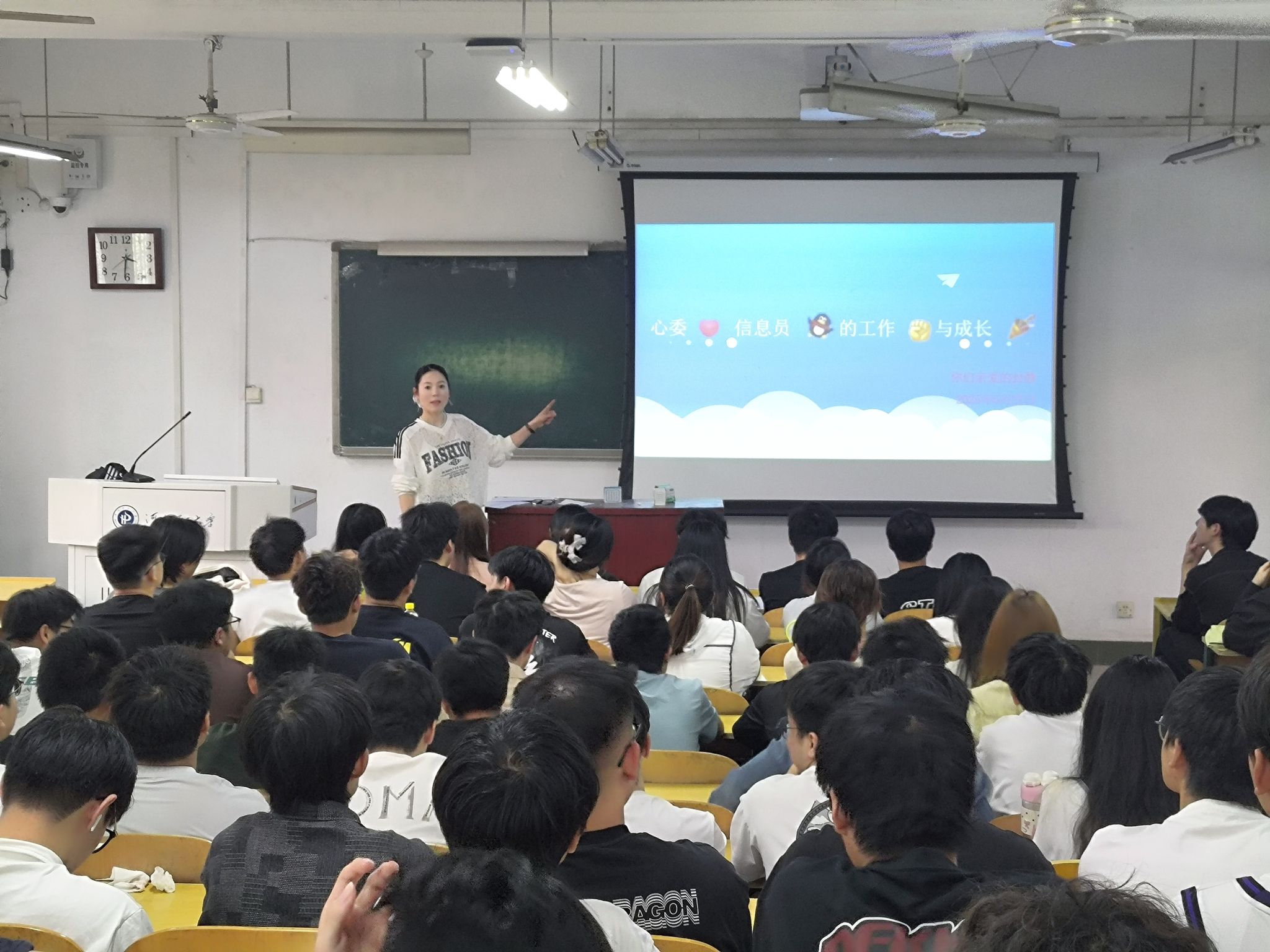 为促进学生思想道德素质、科学文化素质和身心健康素质协调发展,切实提升班级心理委员和信息员的专业素养与工作能力,5月27日下午,麻豆传媒映画 在102教室开展了心理委员及信息员专题培训活动,全体心理委员、宿舍信息员参加活动。此次培训由心理辅导员封静主讲。